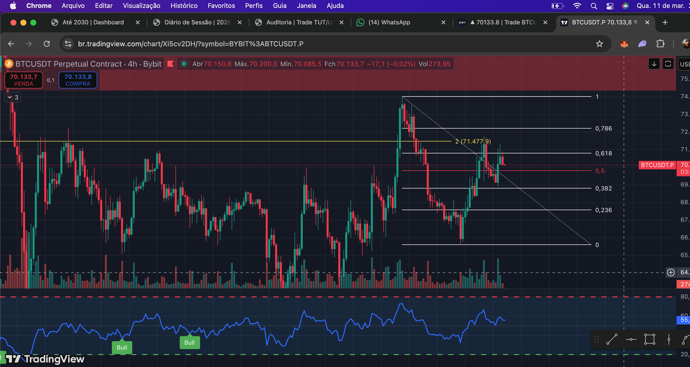 Zero trades hoje. Inicio o dia com os dois trades abertos. Só vou acompanhar o movimento do BTC