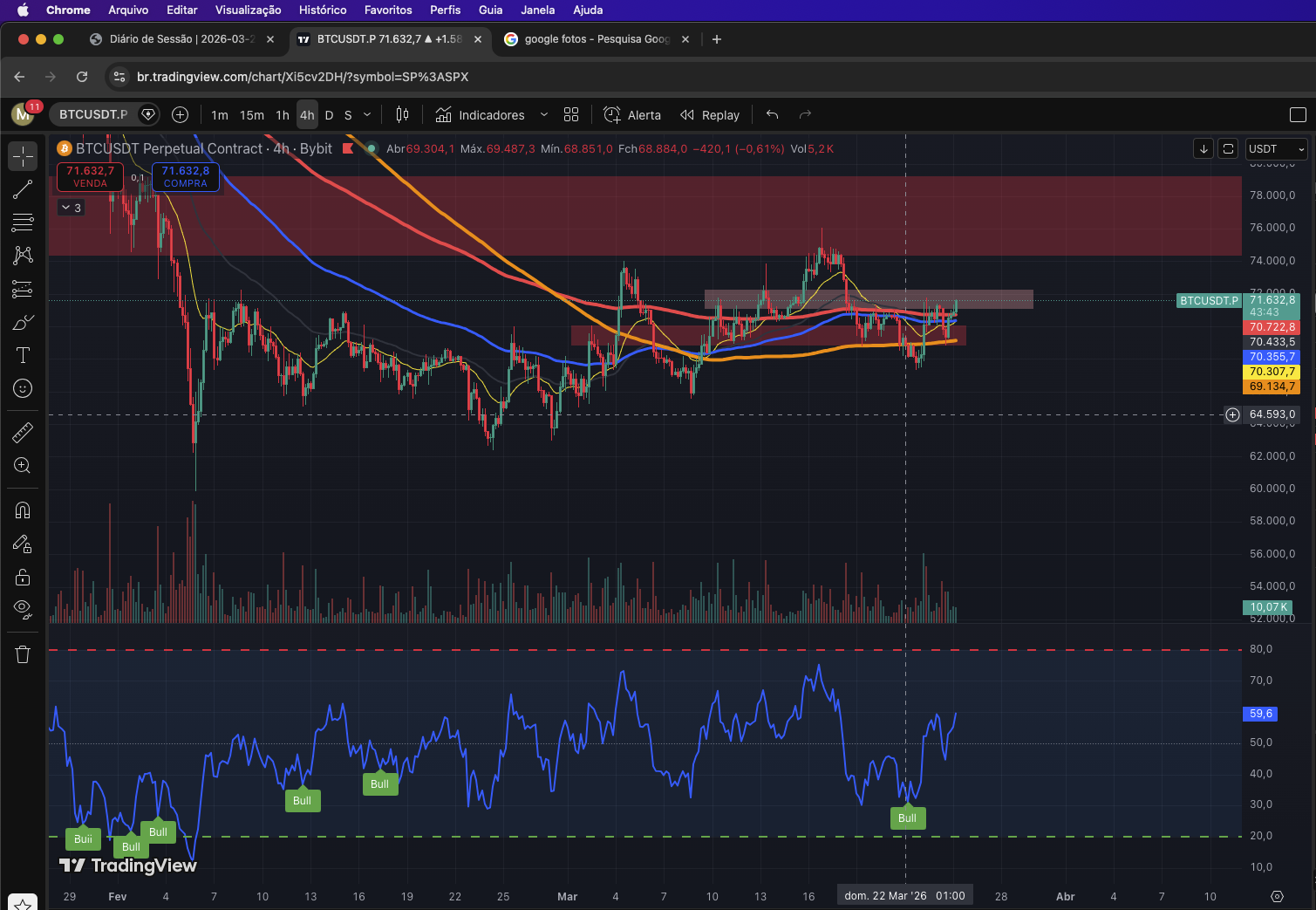 Dia produtivo, analisei o mercado, fiz algumas projeções para o BTC. Estamos em uma região de decisão, péssimo para trades. Fecho o dia com um loss dentro da gestão e uma posição de long em SOLV/USDT em aberto.