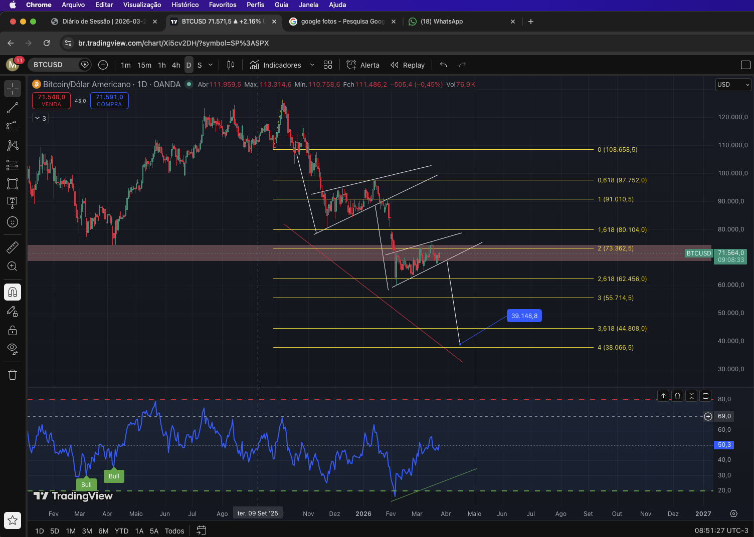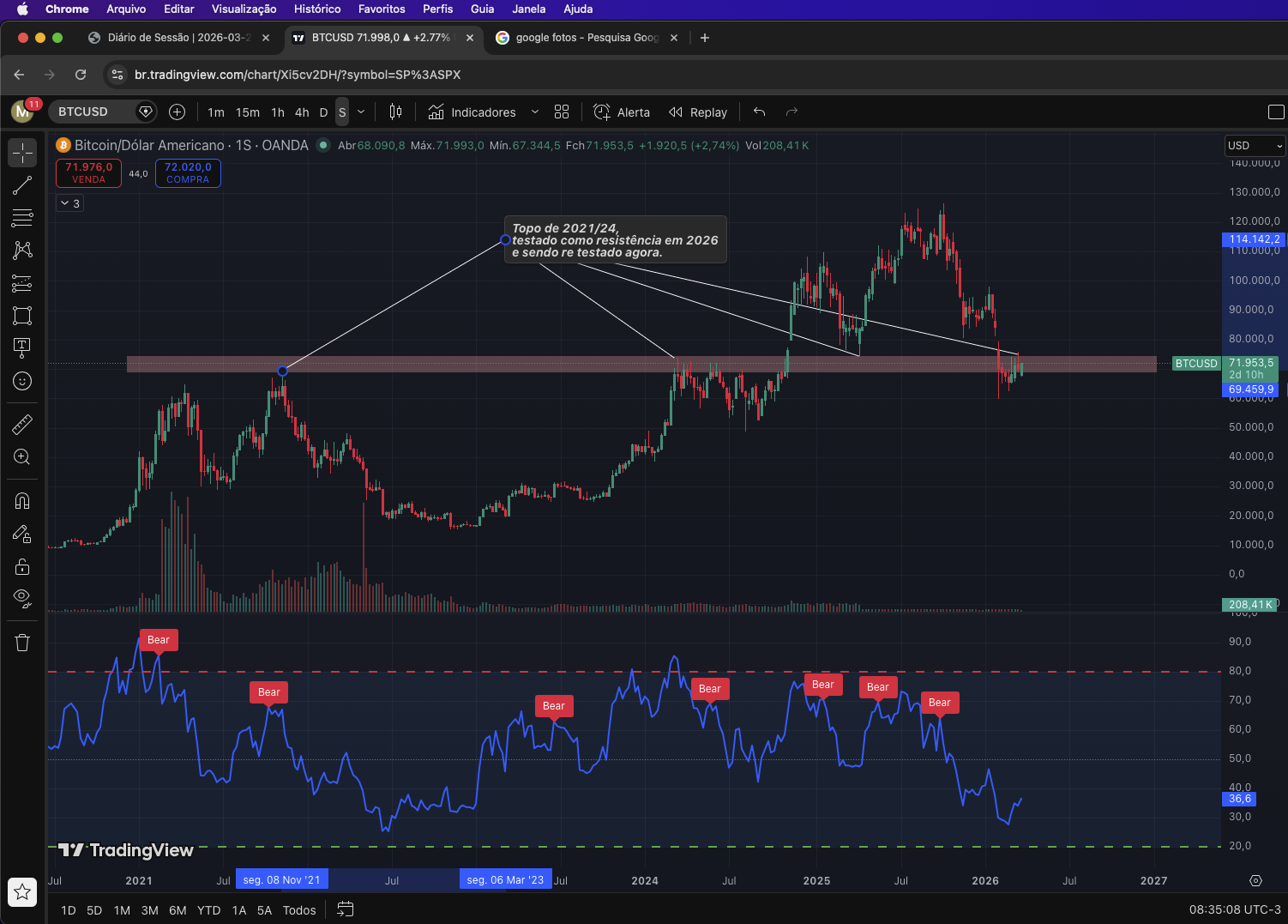 Esse é o momento macro que estamos no BTC, estamos re testando um região muito importante para o BTC.